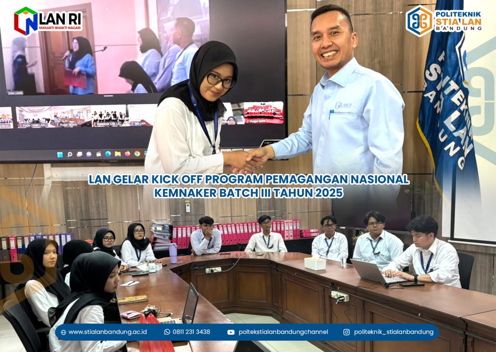 Lembaga Administrasi Negara (LAN) secara resmi menyelenggarakan kegiatan Kick Off Program Pemagangan Kementerian Ketenagakerjaan (Kemnaker) Batch III Tahun 2025 pada Selasa, 16 Desember 2025. Kegiatan ini dilaksanakan secara hybrid, yaitu luring di Kantor LAN Pusat serta daring melalui platform Zoom Meeting, sehingga dapat diikuti oleh seluruh peserta pemagangan dari berbagai satker LAN yang berada di […]