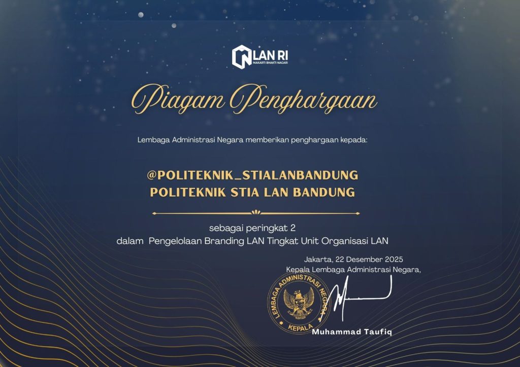 ✨ Dengan Bangga! ✨ Politeknik STIA LAN Bandung berhasil meraih Peringkat 2 Pengelolaan Branding LAN Tingkat Unit Organisasi LAN 🏆 Capaian ini menjadi bukti komitmen Politeknik STIA LAN Bandung dalam membangun citra kelembagaan yang kuat, konsisten, dan berdaya saing, sejalan dengan nilai Makarti Bhakti Nagari. Terima kasih atas kolaborasi, dedikasi, dan kerja keras seluruh sivitas […]