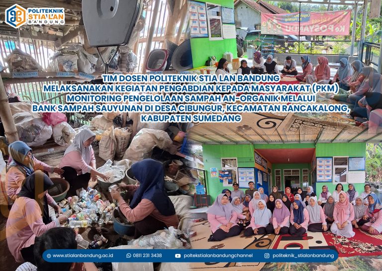 Tim Dosen Politeknik STIA LAN Bandung melaksanakan kegiatan Pengabdian Kepada Masyarakat (PKM) dalam rangka Monitoring Pengelolaan Sampah An-Organik Melalui Bank Sampah Sauyunan di Desa Cibungur,