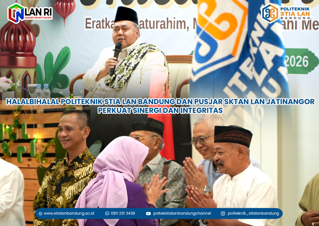Bandung — Politeknik STIA LAN Bandung bersama Pusat Pembelajaran dan Strategi Kebijakan dan Manajemen Aparatur Negara (Pusjar SKTAN) LAN Jatinangor menyelenggarakan kegiatan Halalbihalal dalam suasana hangat dan penuh kebersamaan. Mengusung tema “Eratkan Silaturahim, Meraih Ridho Ilahi Menuju Jiwa yang Suci”, kegiatan ini menjadi momentum strategis untuk memperkuat ukhuwah serta sinergi antar satuan kerja LAN yang berlokasi di Jawa Barat.