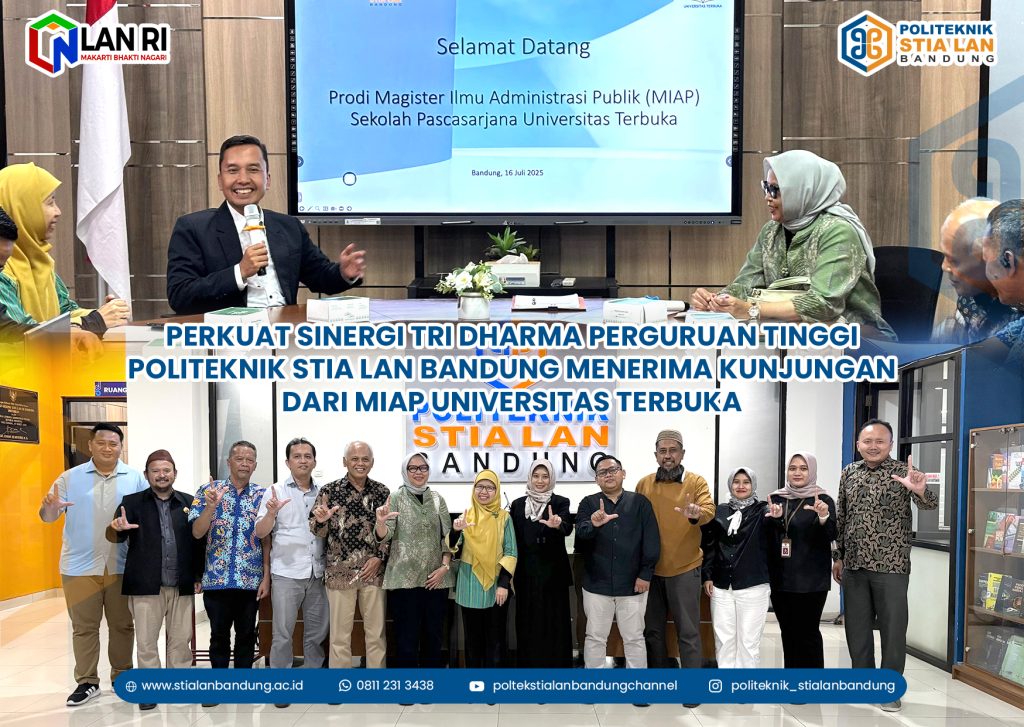 Bandung, 16 Juli 2025 – Politeknik STIA LAN Bandung menerima kunjungan dari Program Studi Magister Ilmu Administrasi Publik (MIAP) Sekolah Pascasarjana Universitas Terbuka dalam rangka kegiatan monitoring dan evaluasi kerja sama, sekaligus membahas penguatan kolaborasi ke depan. Kegiatan ini berlangsung pada Rabu, 16 Juli 2025, bertempat di Ruang Rapat Lantai 1 Politeknik STIA LAN Bandung.