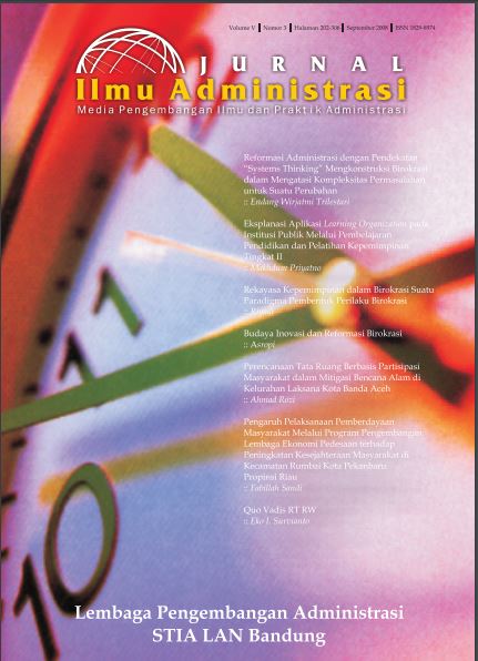The common negative phenomenon among leaders within bureaucratic context is usually in the form of the lack of understanding of the organization’s goals. The leaders tend to get bogged down on routine activities; as a result, they are unable to develop an innovative model for their jobs. Patrimonialism and patron-client culture have become fossilized among bureaucratic leaders. In addition, like and dislike still plays a role in the personnel promotion process. Feudalistic, otoriarian, and undemocratic leadership definitely influences the bureaucratic behaviours. To overcome those problems, a measure to improve leadership quality needs to be taken in the form of leadership engineering based upon the model of professional work cultures. Deploying this model is expected to be able to convert bureaucratic mindset towards reward system rather than just punishment one. In other words, the ability to construct a more humanistic relation for both internal and external circumstances, is the key factor to sucessful leadership as well as the ability to